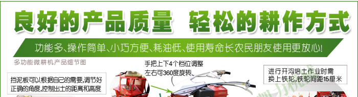 您需要的答案我們放在了最下面,請向下看 開溝培土機保養上的錯誤有哪幾個 我們需要了解的田園管理機使用知識 購買田園管理機有哪些標準 有五點知識能延長微耕機的使用時間 微耕機在使用時具體需要面對的情況 保養中耕機和開溝培土機需要注意 維修微耕機需具備的知識 開溝培土機小故障的解決辦法 脫檔的開溝培土機如何處置 多功能各種燃油的使用標準 田園管理機開啟發動機的方法 需要重點保養的微耕機幾大部分 磨合開溝培土機過程出現問題 使用多功能微耕機安全無故障